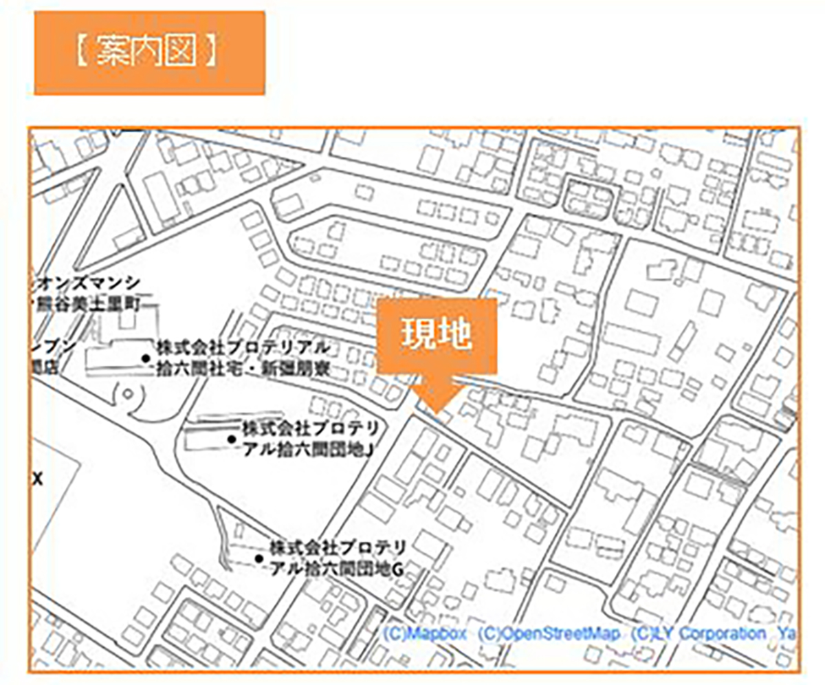 | 物件名 | 熊谷市拾六間 売地 | 住所 | 熊谷市拾六間597-2の一部(予定地番:597-5) |